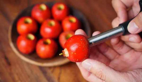 1、10個山楂用粗吸管或者開椰器去核。
