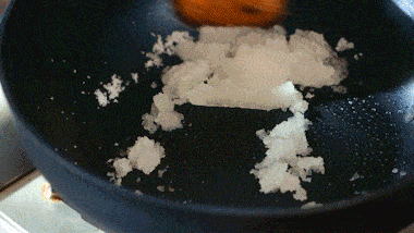 4、轉中小火,倒入70g糖翻炒至褐色。