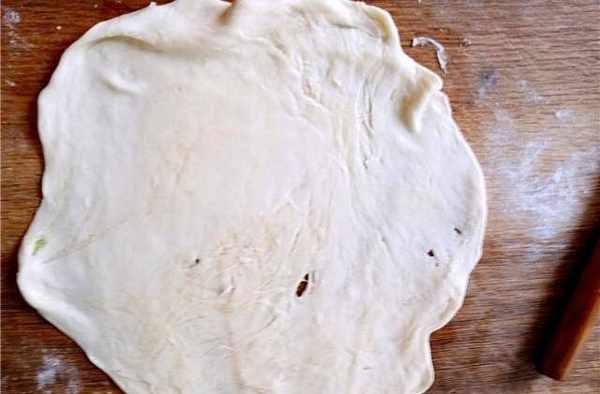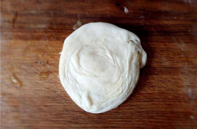 再次搟開。上圖就是制作好的蔥油餅的餅胚。
