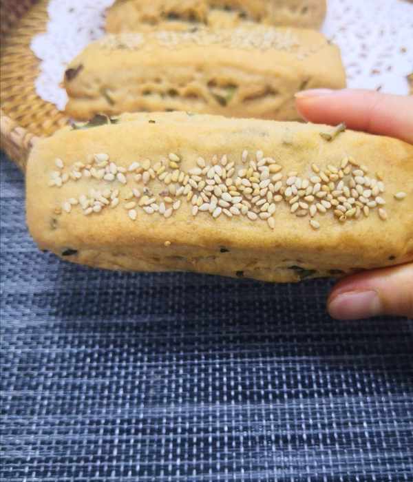 蔥香味濃,滿屋飄香,熟芝麻經烤後更香更脆。