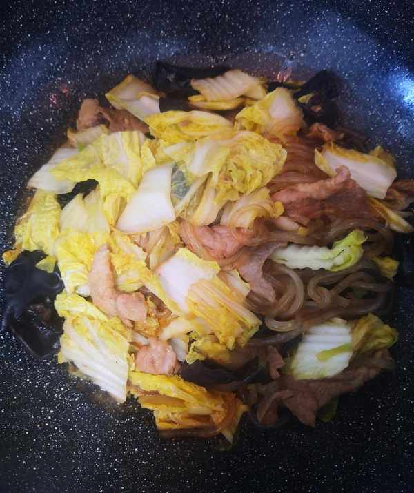 煮至白菜快變軟時加適量鹽、生抽,繼續煮至白菜變軟、粉條變透明即可。