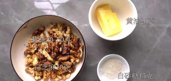 包子餡:核桃50~60克,白芝麻10克,白砂糖15克,黃油20克