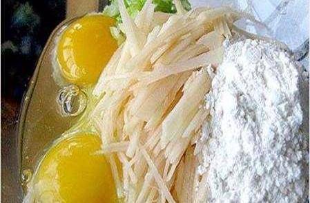 註意:土豆切絲比較好,這樣更容易煎熟。如果喜歡吃胡蘿卜的也可以切一些胡蘿卜加進去,香香甜甜的也很美味。