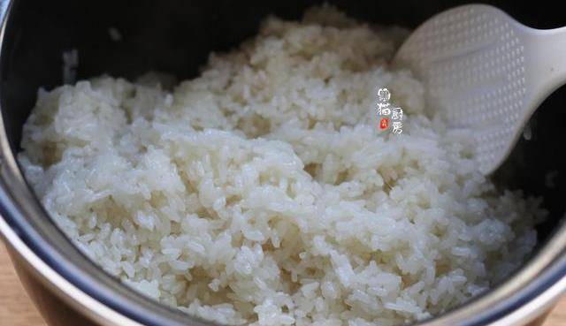 煮熟的糯米飯用飯鏟子打松,稍微放涼一下。