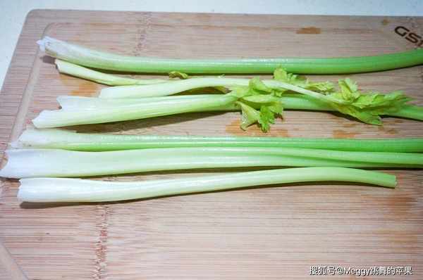 3. 芹菜洗凈,如果粗桿中有老筋可撕掉,如果不介意想要獲取更多植物纖維,老筋可不去;