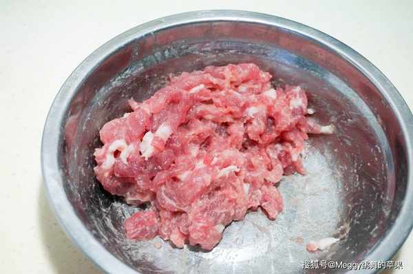 2. 豬肉切絲,放淀粉、料酒抓捏上漿;