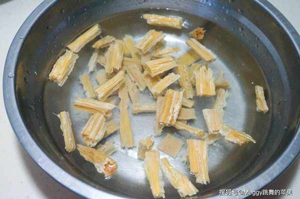 1. 腐竹撅寸段,用涼水泡發;