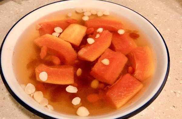 3.再放入木瓜、桃膠、杞子等再煮5分鐘。