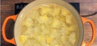 6開大火煲至滾起後轉小火煲30分鐘,倒入花膠繼續煲30分鐘