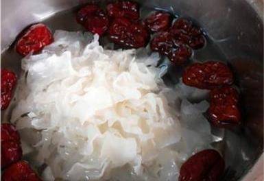 2.紅棗洗凈後用熱水泡半小時後去籽;銀耳浸泡後洗凈