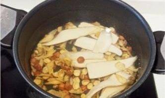2.加入清水6碗煮沸,放入杏仁先煲15分鐘。