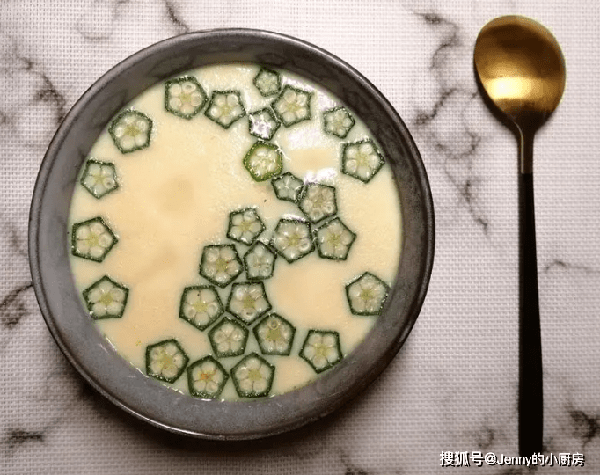 然後用小勺將泡沫撇掉,放入秋葵,蓋上盤子或者蓋上保鮮膜,記得紮孔。