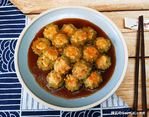 想要更低脂,可以將苦瓜釀肉放進蒸鍋內蒸熟,兩種做法選一種就好。