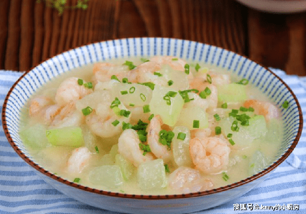 另起鍋加油,倒入蝦仁翻炒,炒到變色,再倒入冬瓜翻炒均勻。