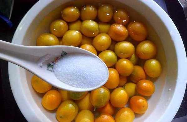 準備食材:新鮮的金桔一斤、老冰糖40克、蜂蜜30克、食用鹽適量。
