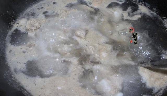 5.大火煮開後轉小火煲40分鐘左右,能看到鍋裡的湯色漸漸變白,這個時候可以加少許鹽調味後,大火煮開就可以關火瞭。