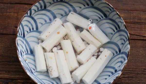 2.煲湯用的淮山,我一般都是買的鐵棍淮山,組織和口感更粉嫩細膩,氨基酸含量也更多更豐富,煲湯首選。把淮山皮削去,放入清水中浸泡,這樣也能同時防止它氧化。準備的芡實一般在藥店和湯料店裡能買到,幹貨食材洗凈浸泡一會也很有必要哈。
