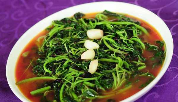 3、莧菜:莧菜是一種營養價值極高的蔬菜,富含鈣、鐵、磷等礦物成分,莧菜的鐵含量比菠菜還高一倍。莧菜中的多種養分在蔬菜中都名列前茅。莧菜最常見的有兩種顏色,一種是綠色的野莧菜,一種是四川的紅莧菜。嶺南地區,在秋分當天有吃“秋菜”的習俗,這裡的秋菜就是野莧菜,一般用來跟魚片“滾湯”。在四川,市場上最常見的是紅莧菜,一般用來清炒,不需要加太多調味料,隻需要加鹽就行,吃的就是它的鮮香,還可以做莧菜包子。紅莧菜的顏色很容易溶於水,所以它也可以被用來當天然的色素,用來做包子饅頭或者餃子都非常漂亮。