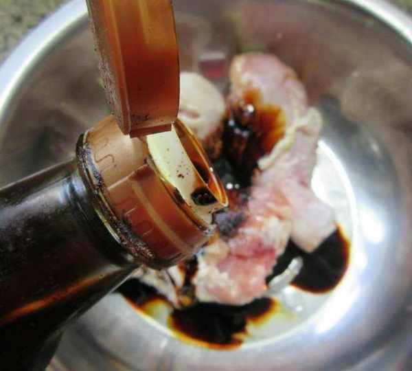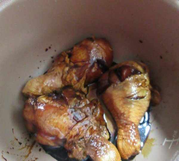 第7步、接著,將醃制好的琵琶腿連汁水一起下入電飯鍋裡。