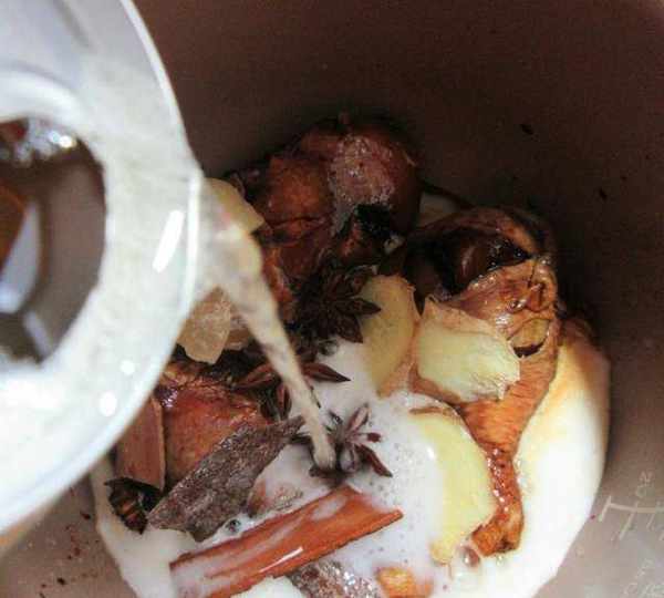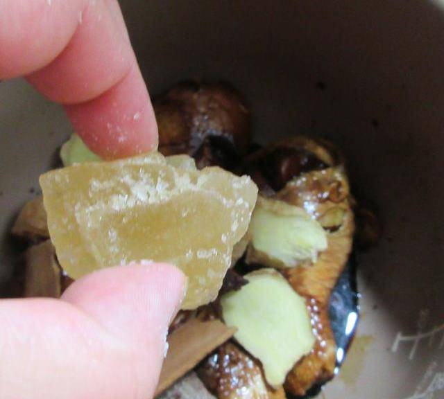 第8步、擱入薑片、桂皮、大料和黃冰糖。
