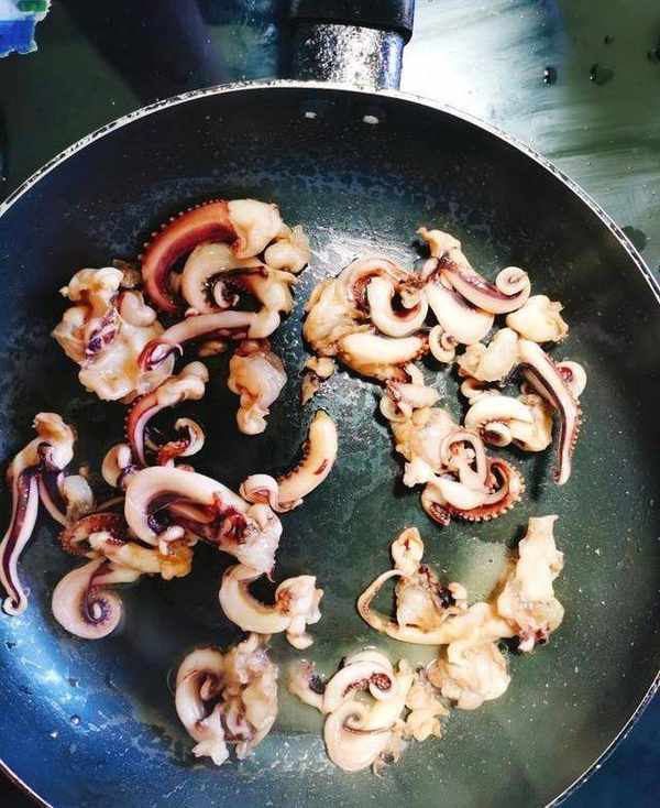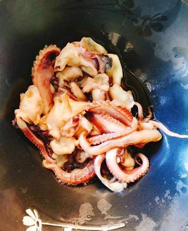 配料:適量的魷魚,一塊薑,適量的鹽,兩湯匙糖,兩湯匙醬油,兩湯匙蠔油和兩湯匙醋。
