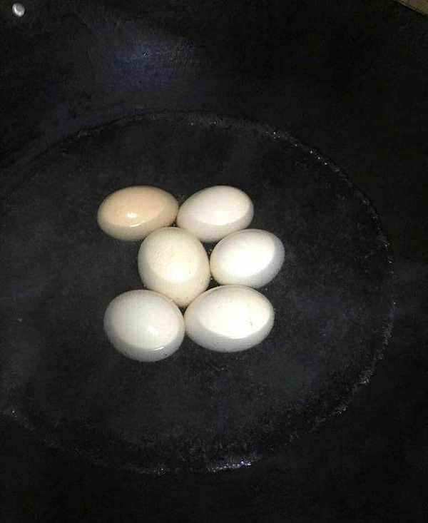 1.雞蛋生水入煲,煮5分鐘左右。撈起來立即浸入冷水中,等雞蛋冷卻後剝殼。
