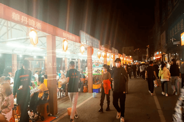 雪花·華丹主題街區燈火璀璨。五一期間已搭建完成上海路、三亞路、宜山路、廈門東街、林苑路5條雪花·華丹主題街區,共包含近90傢經營業戶,日客流量約2400人次,真正讓街區人氣“旺”起來,激情“燃”起來,城市 “亮”起來。