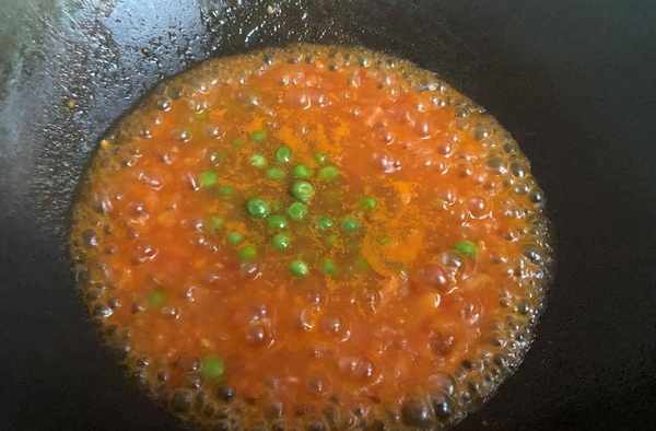 4. 然後鍋裡放入適量的油,加入幹脆的番茄小火慢炒,翻炒出香味,番茄變軟出汁。