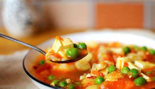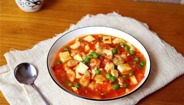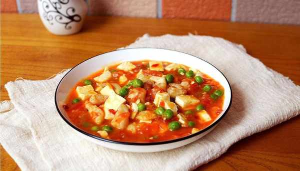 龍利魚200g、南豆腐200g、番茄一大個200g、新鮮豌豆粒50g