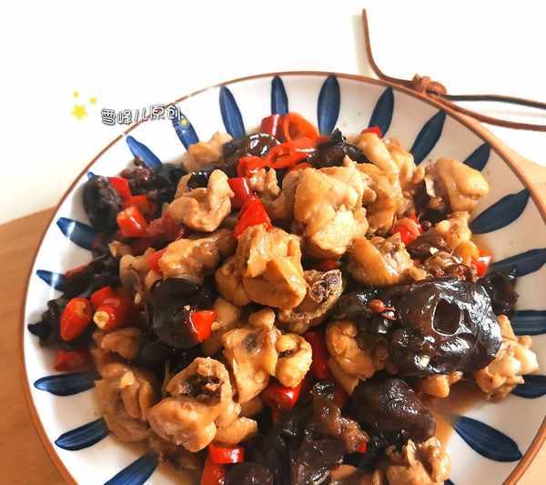 所用資料:仔雞半只,小辣椒適量,木耳少許,鹽適量,生抽1勺,花生油少許。