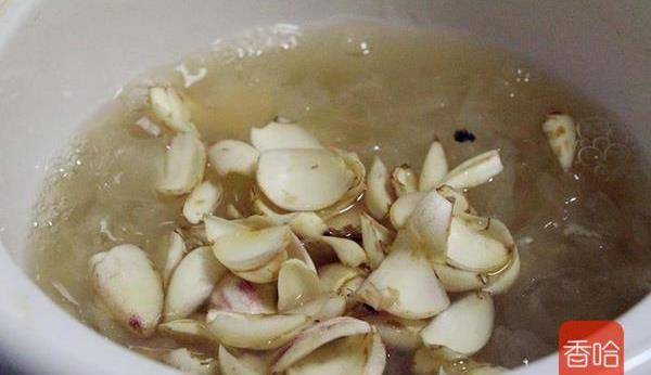 7.木耳燉軟後燉鍋中加蓮子,再燉煮半小時。