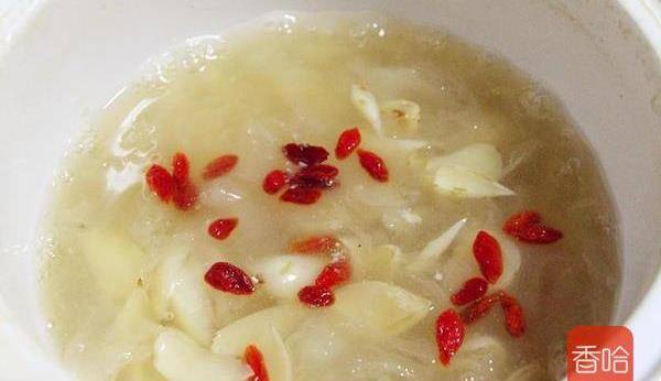 銀耳20克、新鮮百合一隻、蓮子50克、枸杞一小把、水適量、冰糖適量