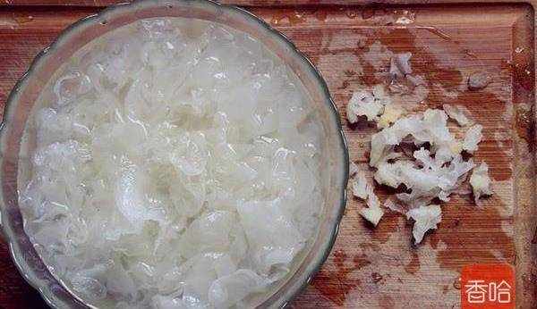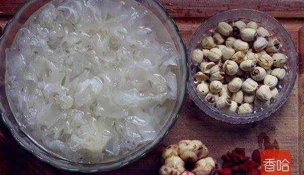 1.銀耳提前半小時用溫水泡發,百合,蓮子,枸杞備用。