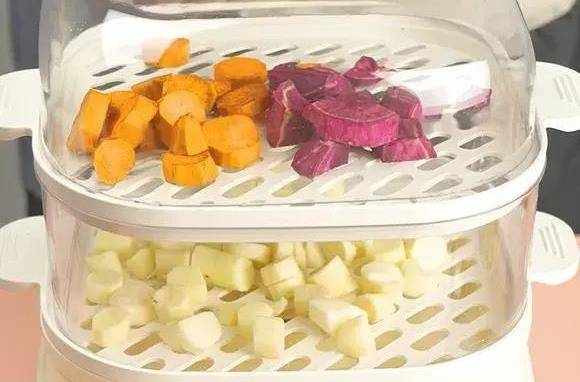 1,分別將山藥、紫薯、紅薯切成小塊。