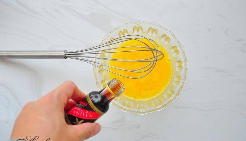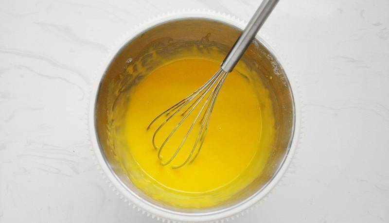 4 碗裡磕入雞蛋,加入檸檬砂糖攪拌均勻,不用打發。