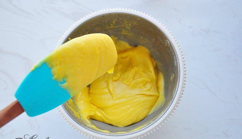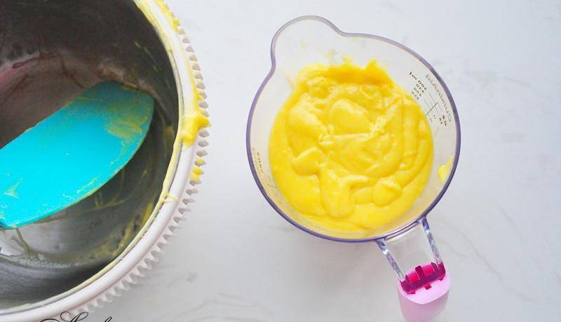 7 黃油隔熱水融化好後趁溫熱倒入面糊中。