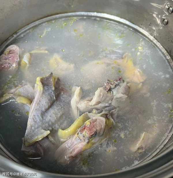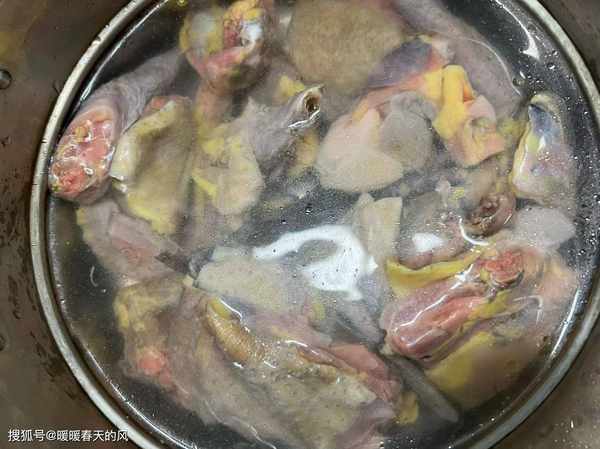 4、烏雞用涼水下鍋,煮開去血沫;洗凈;