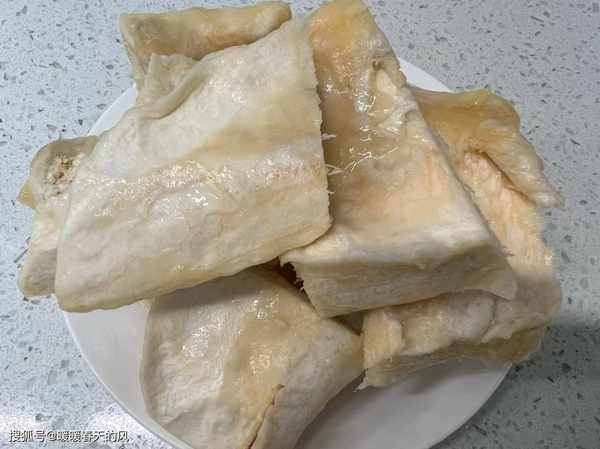 1、榴蓮把果肉取出,把果殼裡的白瓤切下來;