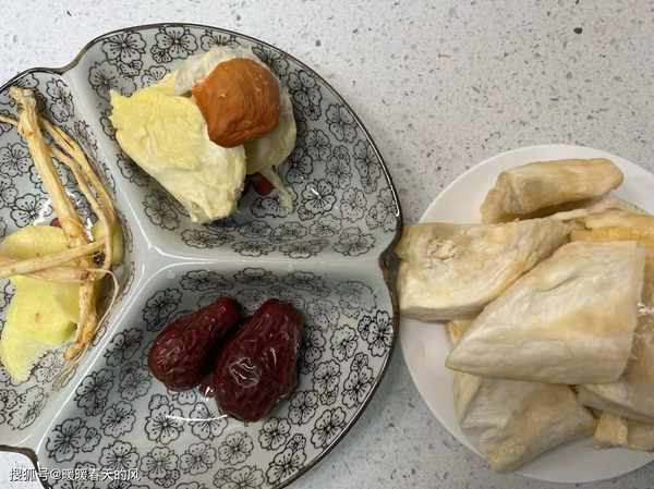 3、準備生薑,黨參,紅棗,榴蓮白瓤,雞湯裡放點榴蓮肉湯會更好喝;