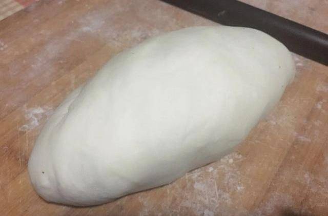 普通的中筋面粉300克加180克的水,加2克的鹽,用面包機和成光滑的面團。