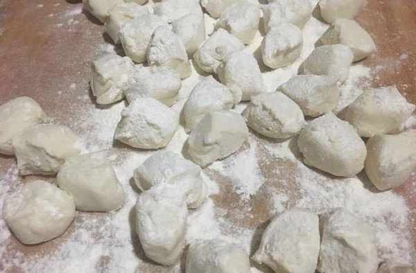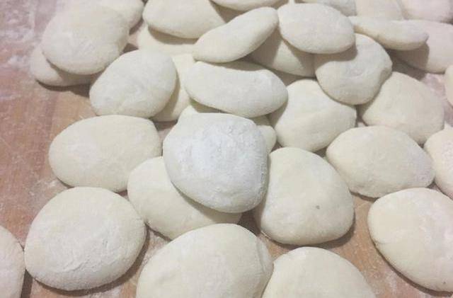 用手揪成大約十克一個的小劑子,或者用到切成小劑子也可以。