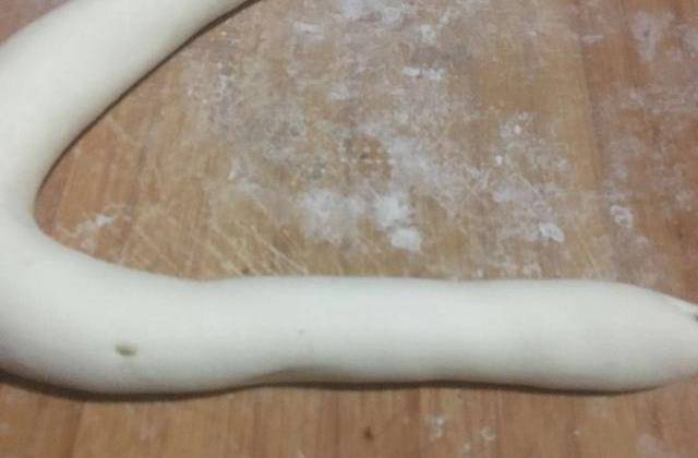 把面團分成幾個小面團,小面團搓成長條。