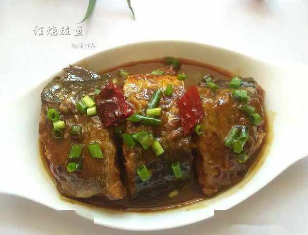 資料。鮁魚,醬油,紅糖,大蒜,薑,葱,鹽,麵粉,幹辣椒,花生油。做法。