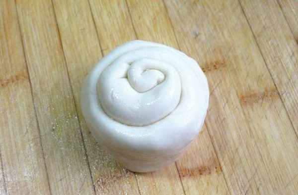 第八步,順一頭卷起來,卷成如圖的樣子,按平後放在一邊醒著,再把其它的依次做好;