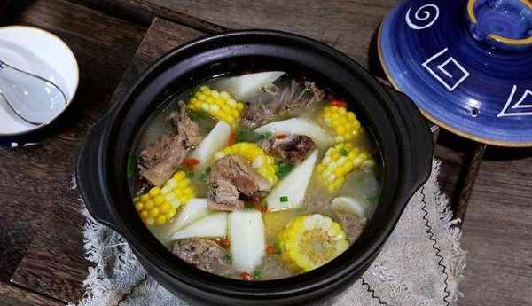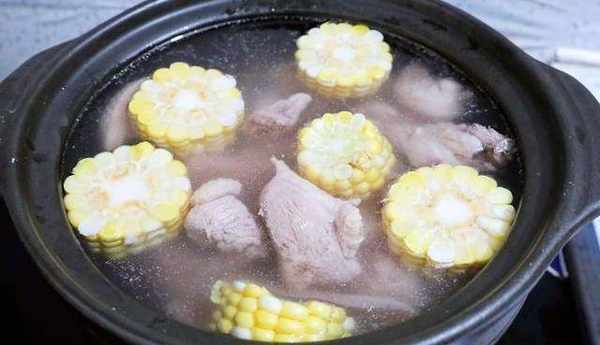 3、將鴨塊、玉米放入砂鍋中,加入清水,大火煮開後轉小火慢燉30分鐘