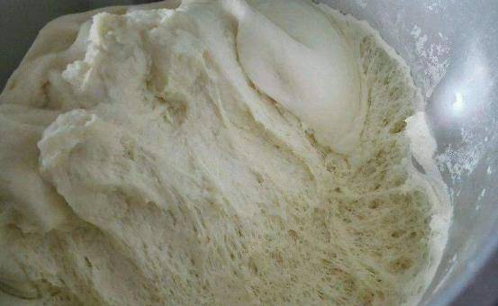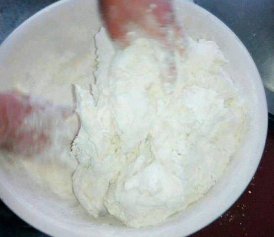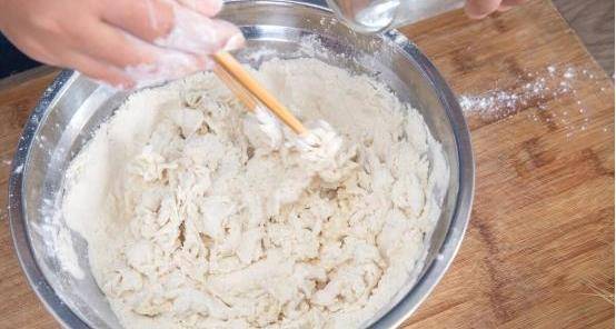 ④500g面粉當中放入10g糖,將3~4g左右的酵母粉放到280g的溫水當中溶解,攪拌均勻之後放入到面粉當中。