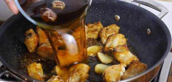3、鍋裡放入植物油,把冰糖放進去小火炒化,炒到糖汁變褐色起密泡,吵糖色不要炒過頭,炒過會苦。