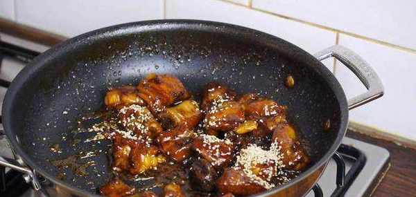 4、這道菜的成敗在於最後1分鐘,一定要耐心地把湯汁完全收幹才算成功。判斷標準是最後鍋裡的湯汁像是炒糖色時一樣冒泡,完全粘附在排骨上沒有任何多餘水分,並且略有牽絲。最後半分鐘要密切註意不要燒焦醋酸;