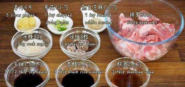 用料:豬小排600g、料酒1勺、醬油2勺、糖(用冰糖色澤更好)3勺、醋4勺糖醋排骨、薑絲