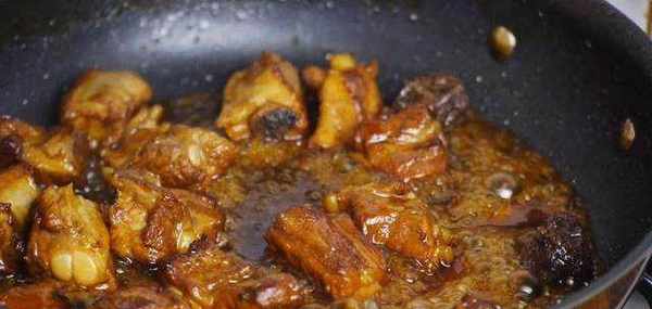 7,待排骨煮軟後,開蓋轉大火收汁,起鍋前烹入幾滴醋拌勻